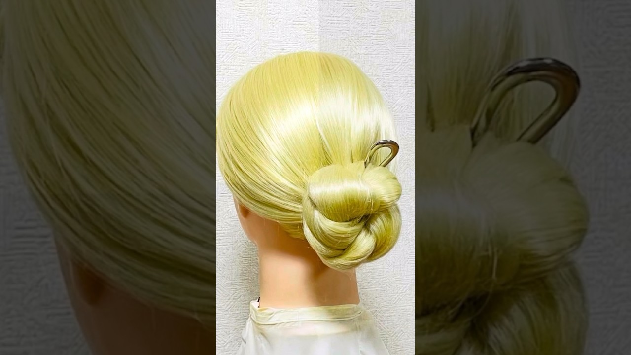 タイトル | 簡単ヘアアレンジ ヘアスティックのツイストねじりシニヨン School Hair Stick Arrangement #簡単ヘアアレンジ #backtoschool #学校 #shorts |