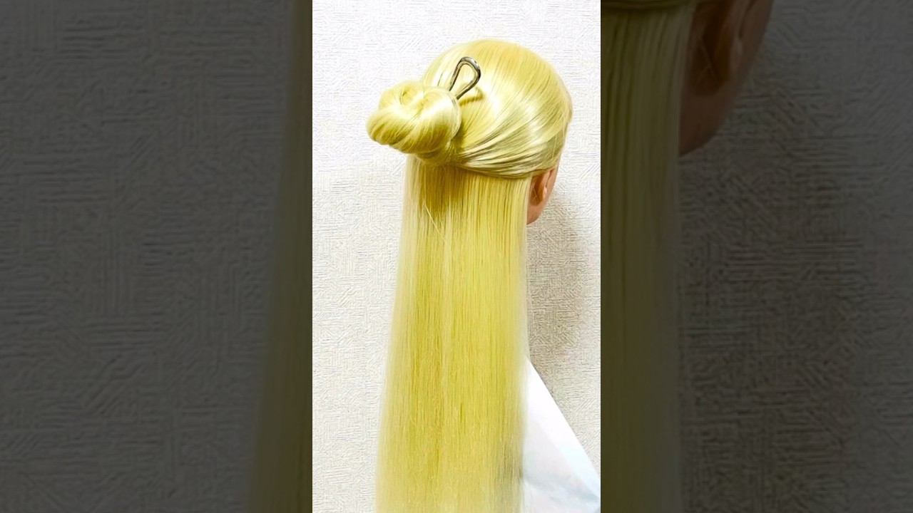 タイトル | 簡単ヘアアレンジ ヘアスティックのお団子ハーフアップ Hair Stick Arrangement #簡単ヘアアレンジ #backtoschool #学校 #shorts #short |