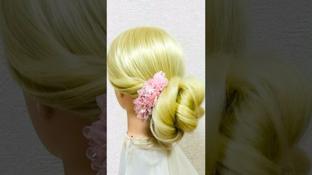 タイトル | 簡単ヘアアレンジ 成人式パーティ着物ボリュームシニヨン Party Hairstyle Donut Chignon#簡単ヘアアレンジ #成人式ヘア #成人式 #shorts #short |