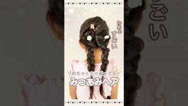 簡単ヘアアレンジ 《めちゃくちゃ凝ってるみつあみヘア》#ヘアアレンジ #キッズヘアアレンジ #かわいい – うらら⌇簡単5分マジック🪄子どもヘアアレンジ 出典:YouTube / うらら⌇簡単5分マジック🪄子どもヘアアレンジ 2025.09.27 簡単ヘアアレンジ